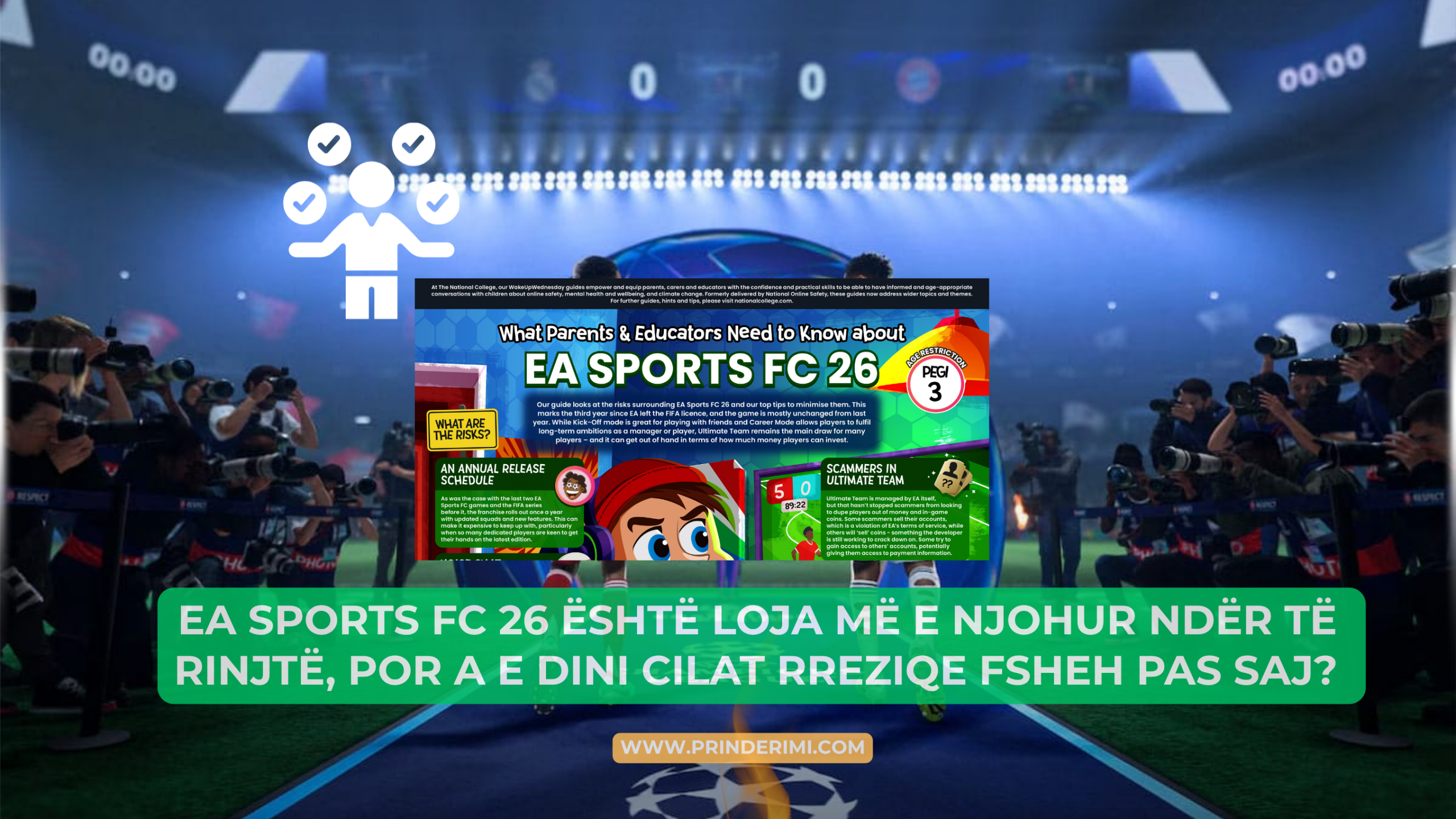 EA Sports FC 26 shënon vitin e tretë që prej ndarjes nga licenca e FIFA-s, por mbetet një nga lojërat më të njohura në botë. Me modalitetet “Kick-Off” dhe “Career Mode”, loja ofron argëtim të shëndetshëm për lojtarët që duan të luajnë me miqtë ose të ndërtojnë karrierë si menaxherë. Megjithatë, pjesa më tërheqëse për të rinjtë mbetet Ultimate Team, ku lojtari mund të krijojë ekipin e tij ideal. Pikërisht aty lindin edhe rreziqet – që lidhen me varësinë, shpenzimet dhe kontaktin me persona të panjohur online.