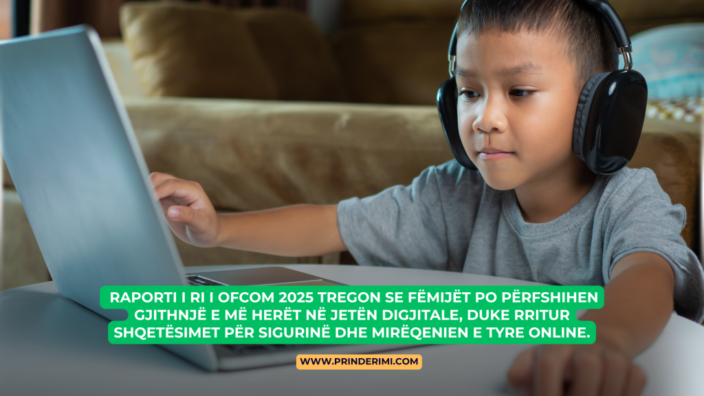Raporti i fundit Ofcom Media 2025 ka sjellë të dhëna shqetësuese mbi mënyrën se si fëmijët po e përdorin internetin dhe platformat digjitale. Me mbi 79% të fëmijëve nga 3 deri në 17 vjeç që tashmë kanë një profil në rrjete sociale, jeta virtuale është bërë një pjesë e pandashme e fëmijërisë. Por bashkë me mundësitë, po shtohen edhe rreziqet: bullizmi digjital, ekspozimi ndaj përmbajtjeve të papërshtatshme dhe varësia nga ekrani po ndikojnë ndjeshëm në mirëqenien mendore dhe emocionale të të rinjve.