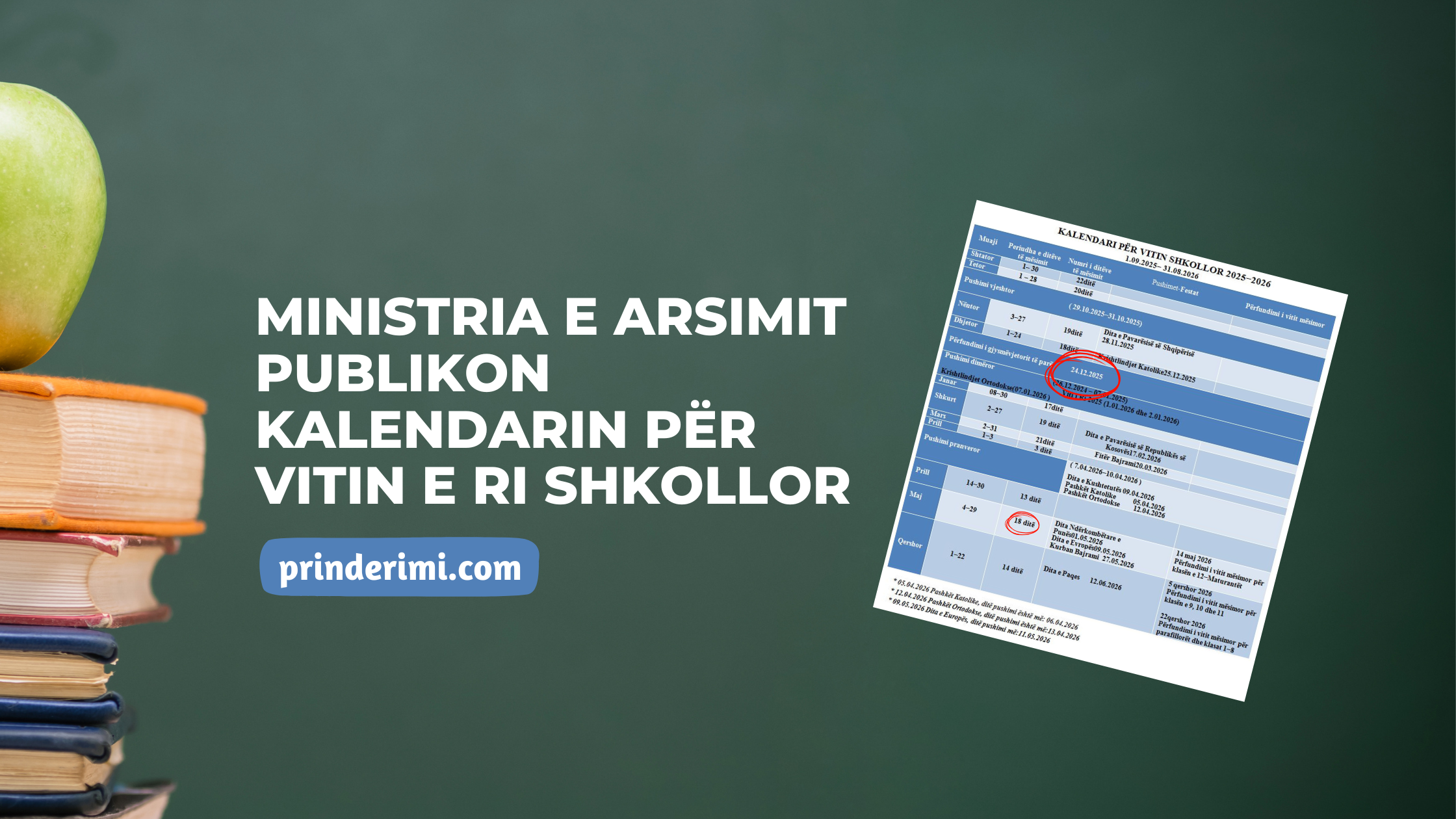 Kalendarin shkollor për vitin 2025/2026, i publikuar nga Ministria e Arsimit, përcakton me përpikëri periudhat mësimore, pushimet sezonale dhe ditët e festave zyrtare për të gjitha nivelet e arsimit në Kosovë. Viti shkollor nis më 1 shtator 2025 dhe përfundon më 31 gusht 2026, me ndarje të qartë në dy gjysmëvjetorë. Pushimet vjeshtore janë paraparë në fund të tetorit, ndërsa pushimi dimëror fillon më 26 dhjetor dhe zgjat deri më 7 janar. Po ashtu, kalendari përfshin edhe pushimet për Krishtlindjet Katolike dhe Ortodokse, Vitin e Ri, si dhe festat shtetërore të Kosovës dhe Shqipërisë.