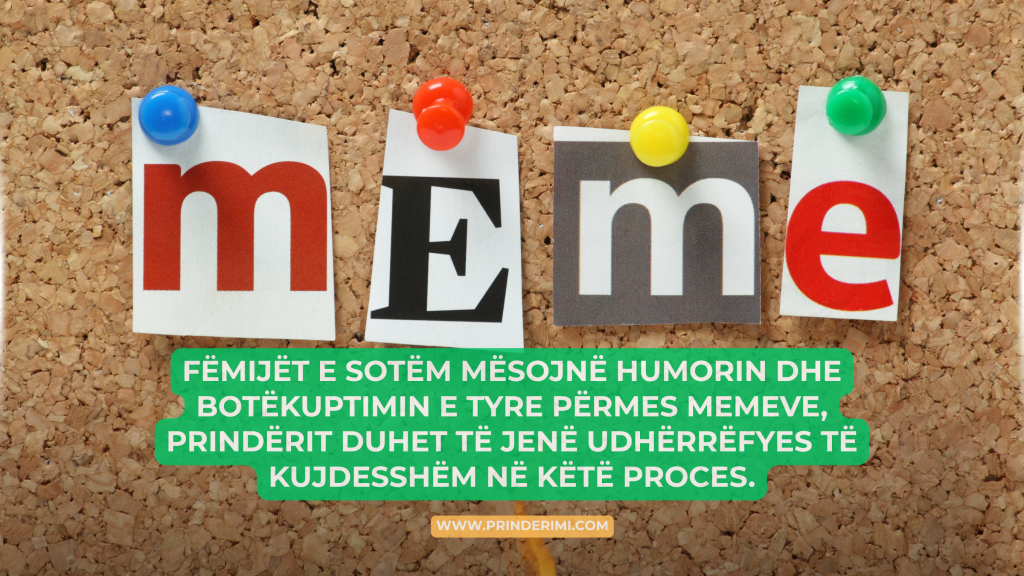 Flisni rregullisht me fëmijët dhe përpiquni të kuptoni botën e tyre digjitale. Pyetini pse u pëlqen një meme dhe çfarë kuptimi ka për ta. Duke dëgjuar pa gjykim, krijoni besim dhe ua bëni më të lehtë të flasin hapur nëse diçka i shqetëson.