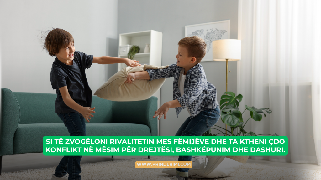 Nëse jeni prind, me siguri ju tingëllon e njohur situata kur nga dhoma tjetër dëgjoni zhurmë, qeshje të përziera me lot dhe akuza për një lodër të marrë pa leje. Grindjet midis vëllezërve dhe motrave janë pjesë e natyrshme e rritjes, por shpesh prindërit ndihen të lodhur duke ndërhyrë mes tyre. A është kjo normale? A zihen edhe fëmijët e tjerë kaq shpesh? Përgjigja është po, por lajmi i mirë është se ka mënyra efektive për ta kthyer rivalitetin në bashkëpunim.