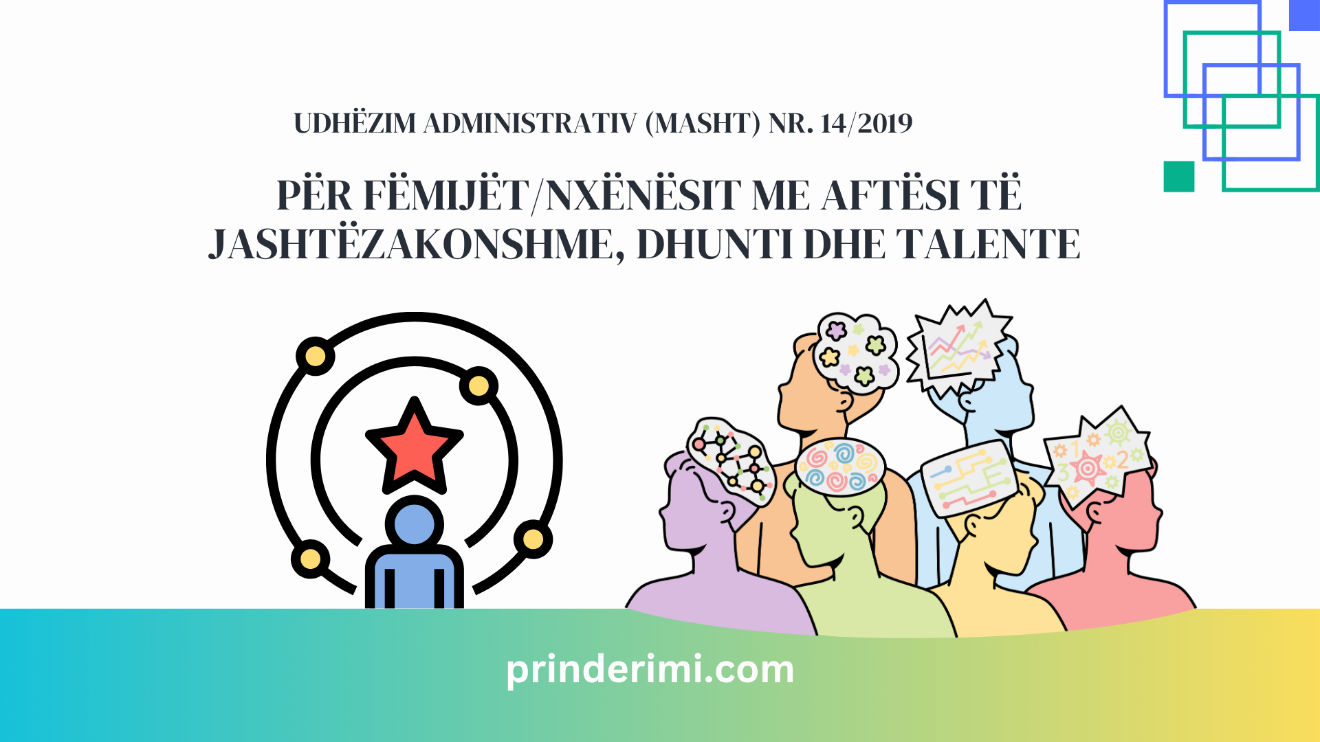 UDHËZIM ADMINISTRATIV (MASHT) NR. 14/2019 PËR FËMIJËT/NXËNËSIT ME AFTËSI TË JASHTËZAKONSHME, DHUNTI DHE TALENTE
